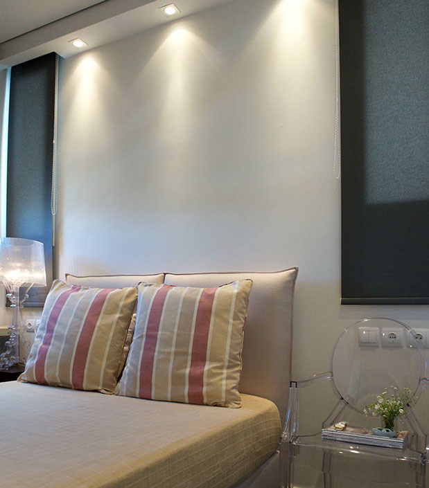 The design’s aim was the creation of a united, flexible space that would offer convenience, since the layout was too restrictive. Because of the existence of an inverted beam the plan was necessarily organized in two levels. Thus, the entrance and the dining room are elevated from the living room, kitchen, bedroom and bathroom.