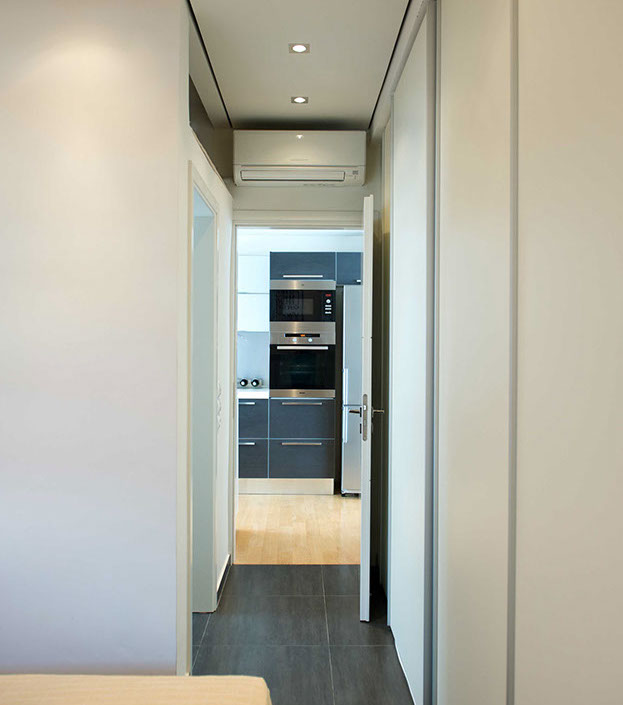 A 60sq.m apartment was reconstructed on the top floor of a block with flats in Athens. The apartment’s layout had to be designed based on fact that columns & beams were constructed in 1970 and served a plan that was unsuitable to new owner’s needs.