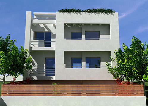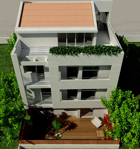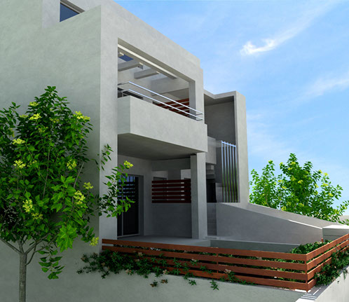 The architectural study involved the planning of two independent houses on a narrow 220 sq.m site in Marousi.