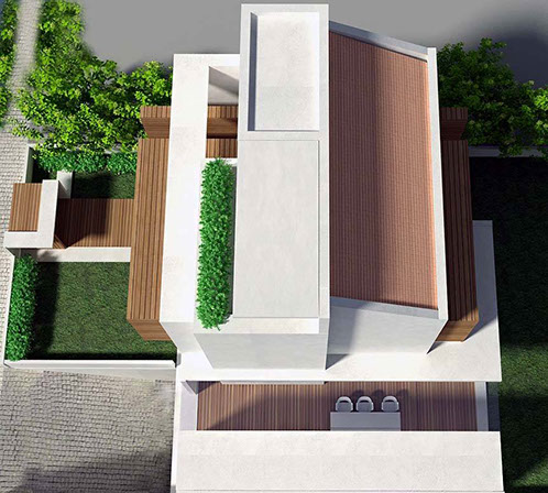 Given the small piece of land and the need for an open landscaped space, the house was designed in two levels.