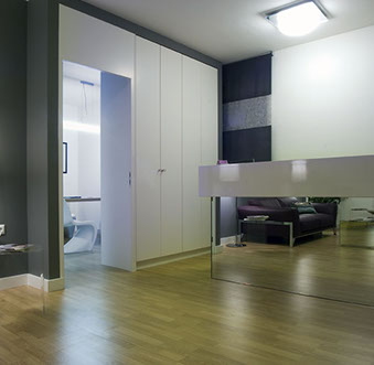 This divider wall holds customer file and storage, with its doors can be also access from both sides: from the inside from the dentist's office as well as from the reception.