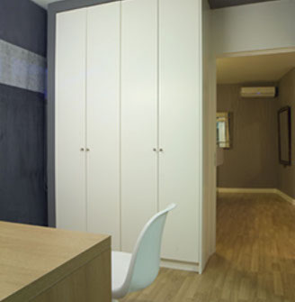 White lacquer and natural wood was used, combining mirror and inox details give a sense of purity and luxury space.