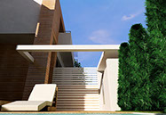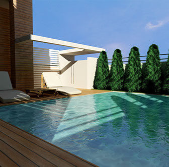 The pool in the front courtyard is the common relaxation area of the two residences.