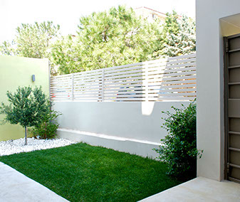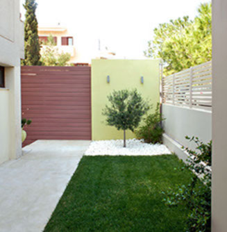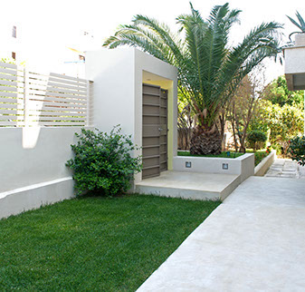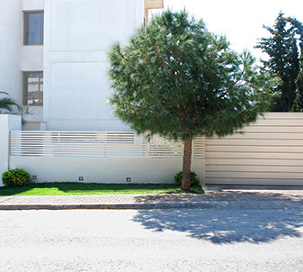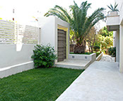 The study involved the redesign of the front gate and fence and the design of a closed parking lot in an existing residence in Voula.