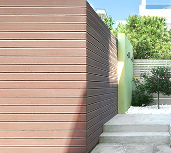 For the closed parking lot, wooden walls & a masonry wall with colored plaster were chosen with the intention of degrading the big volume and making it a harmonious part of the surroundings.