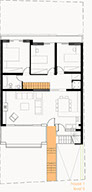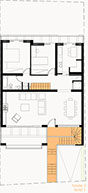 In the first house, the living areas & bedrooms are organized on the ground floor while a separate studio is located in a part of the basement, with direct access to the backyard and to the first floor through an internal staircase.