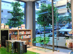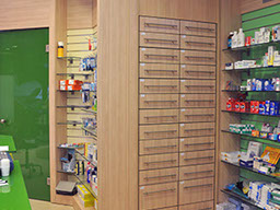 The two storey hight pharmacy allowed the installation of an heating-cooling system on the roof where the air vents are concealed in the gypsum board ceiling.