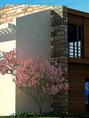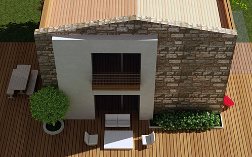 An independent, secondary, volume that hosts a guest room and a bathroom, is designed in the left side of the residence.